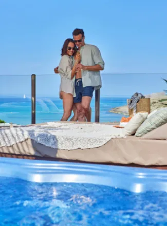 Meeresbrise und Wellenrauschen. Wenn Sie das Meer lieben, bietet Ihnen jede einzelne unserer Suiten genau das, was Sie suchen. Suiten mit Swim-up Pool, Penthouse Suiten über zwei Etagen mit privatem Jacuzzi... Alle Suiten haben einen großzügigen Balkon oder eine Terrasse, ideal um das angenehme Inselklima zu genießen. Helle Studios und Appartements, darunter einige für bis zu 6 Personen. Und das alles nur ein paar Schritte vom Strand entfernt.