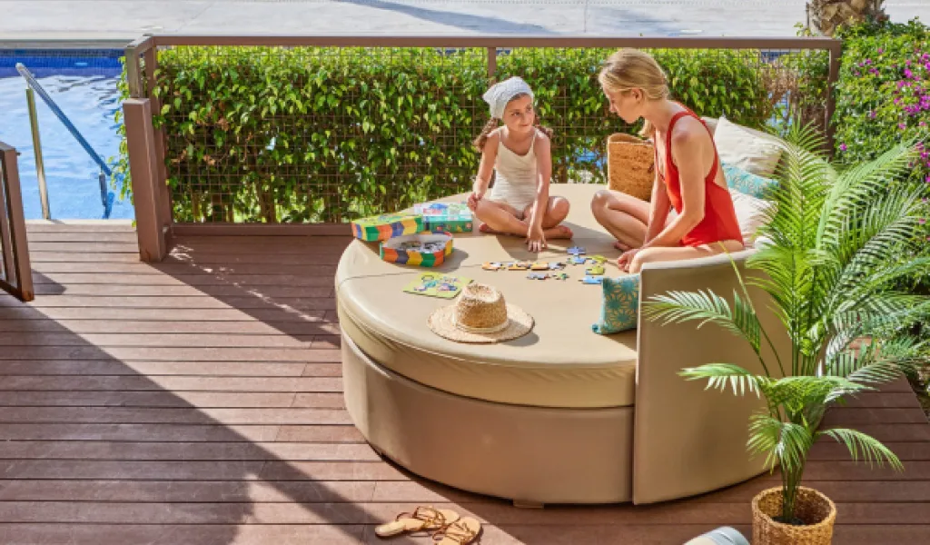 Das Glas Cava zur Begrüßung ist erst der Anfang. Mit viel Liebe zum Detail sorgen wir für Ihre Entspannung. Mit mehr Pools, als Sie vielleicht erwarten: Kinderpool, Adults Only Pool und ein gigantischer Wet Bubble Pool. In unseren geräumigen Suiten ist für die ganze Familie Platz. Wählen Sie aus Familiensuiten mit zwei Schlafzimmern, Suiten mit eigenem Pool oder Jacuzzi auf der Dachterrasse oder Suiten mit Küche.