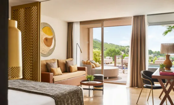 Elegant and filled with natural light, each suite at Zafiro Palace Andratx features spacious terraces and luxurious Mediterranean-style design. Start your day with a refreshing dip in your private pool, followed by a breakfast with stunning mountain views, at your ultimate dream retreat.