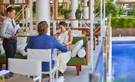 Recharge at the poolside bar with a menu of drinks and takeaway bites—perfect for relaxing under the sun. Enjoy signature cocktails, watermelon salad, sandwiches, or freshly made pizzas.