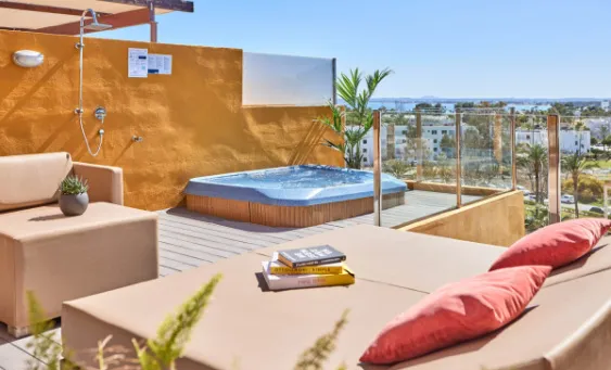 Elevate your experience in this two-story apartment with a private Jacuzzi and a snazzy sun terrace. Sky-high glamour awaits.