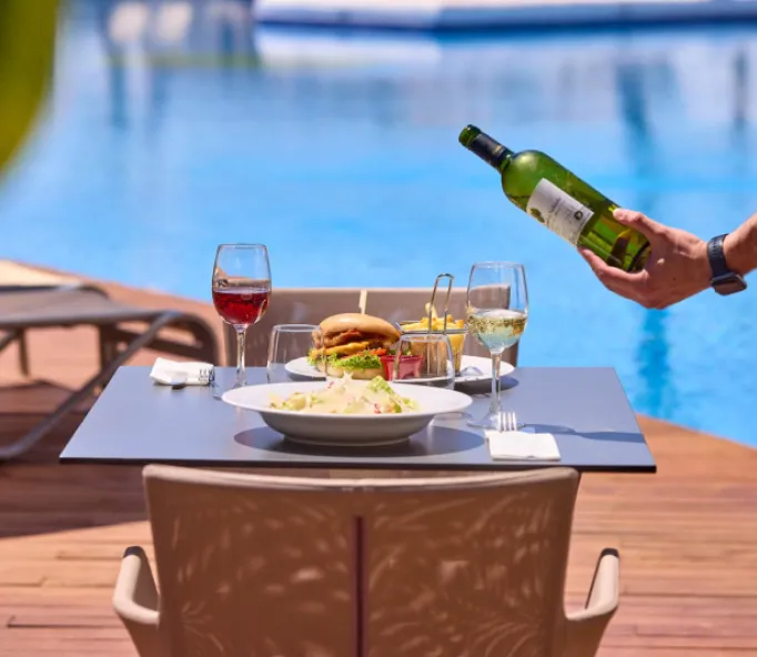 The aroma of freshly brewed coffee. Delicious cakes and ice creams. Tapas with calamari by the pool. Make a toast with a glass of chilled champagne, your favourite wine, a classic mojito, an exotic daiquiri or a frozen margarita. Everything is just perfect.